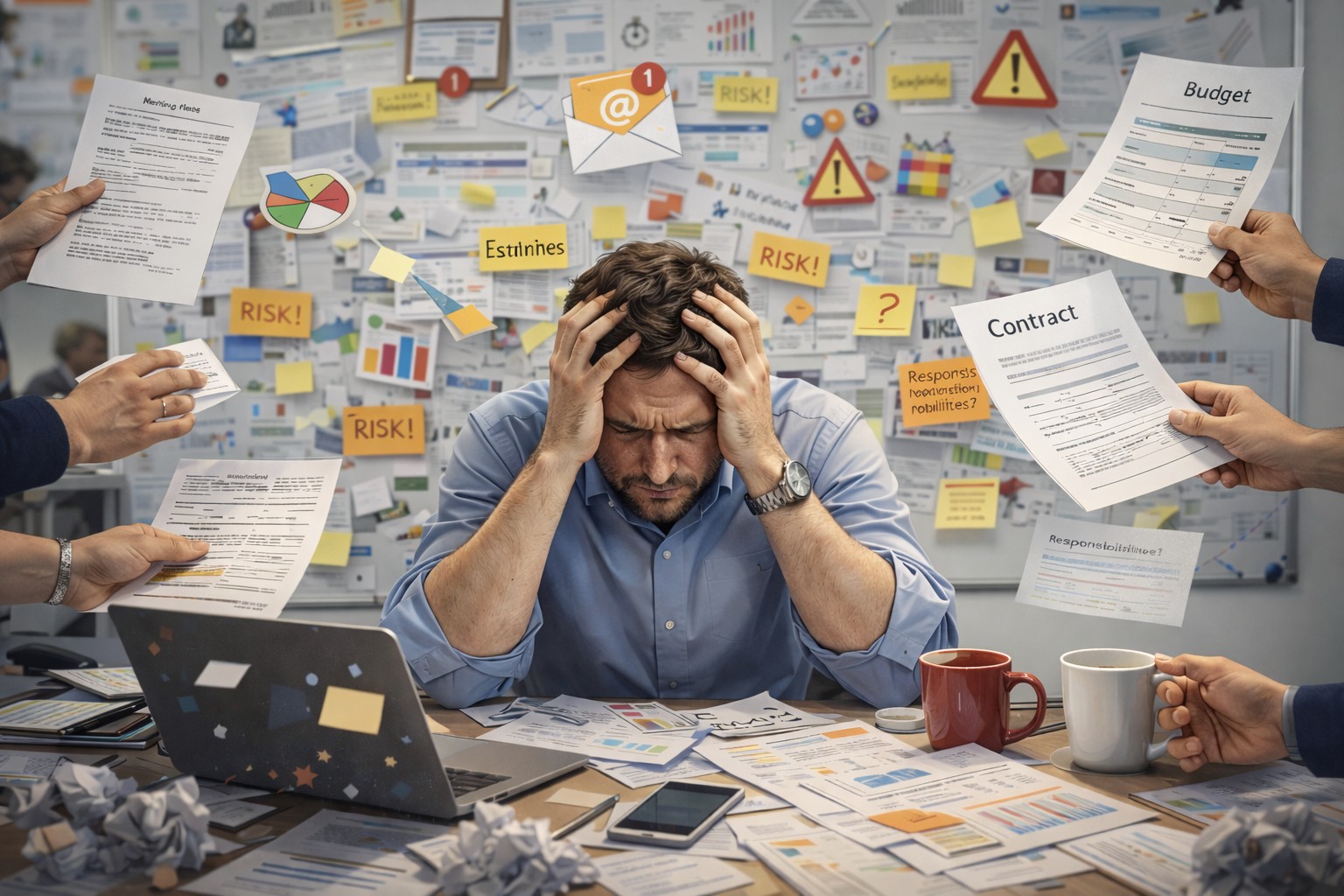 Forestil dig en almindelig projektsituation med 10–15 aktører og 8–10 interessenter: mange kanaler, mange dokumenttyper og et konstant informationsflow i form af mails, mødenoter, beslutningsnotater, kontrakter, tidsplaner og økonomiske nøgletal. Når viden og beslutninger fragmenteres på den måde, bliver projektledelse i praksis et arbejde med at genskabe overblik fremfor at styre leverancer.