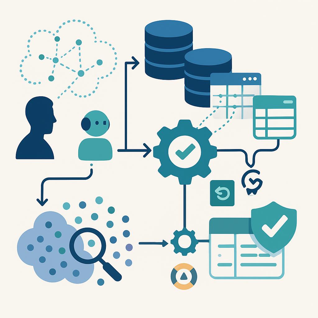 Relationelle databaser udgør ofte autoritative kilder til transaktionelle facts og tal. Forretningsspørgsmål kræver præcis SQL-eksekvering og korrekt fortolkning af resultater. Derfor anvendes specialbyggede assistenter, der oversætter business-intent til SQL, eksekverer under kontrollerede forhold og validerer, at de hentede data rent faktisk besvarer det oprindelige spørgsmål.
